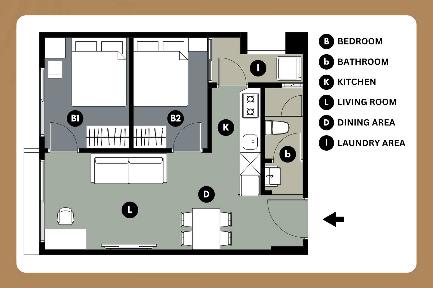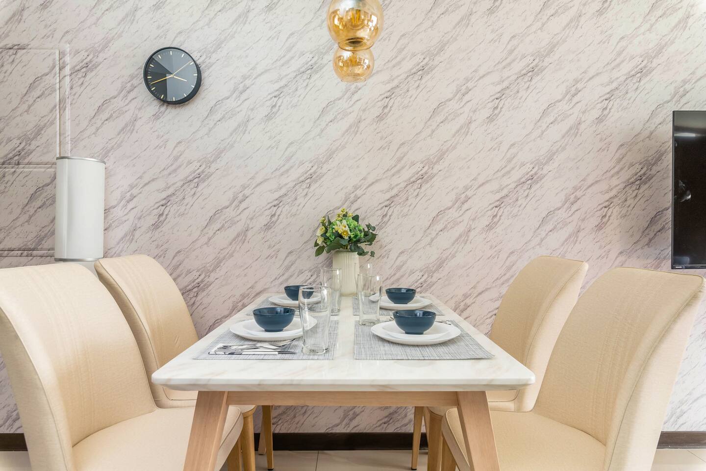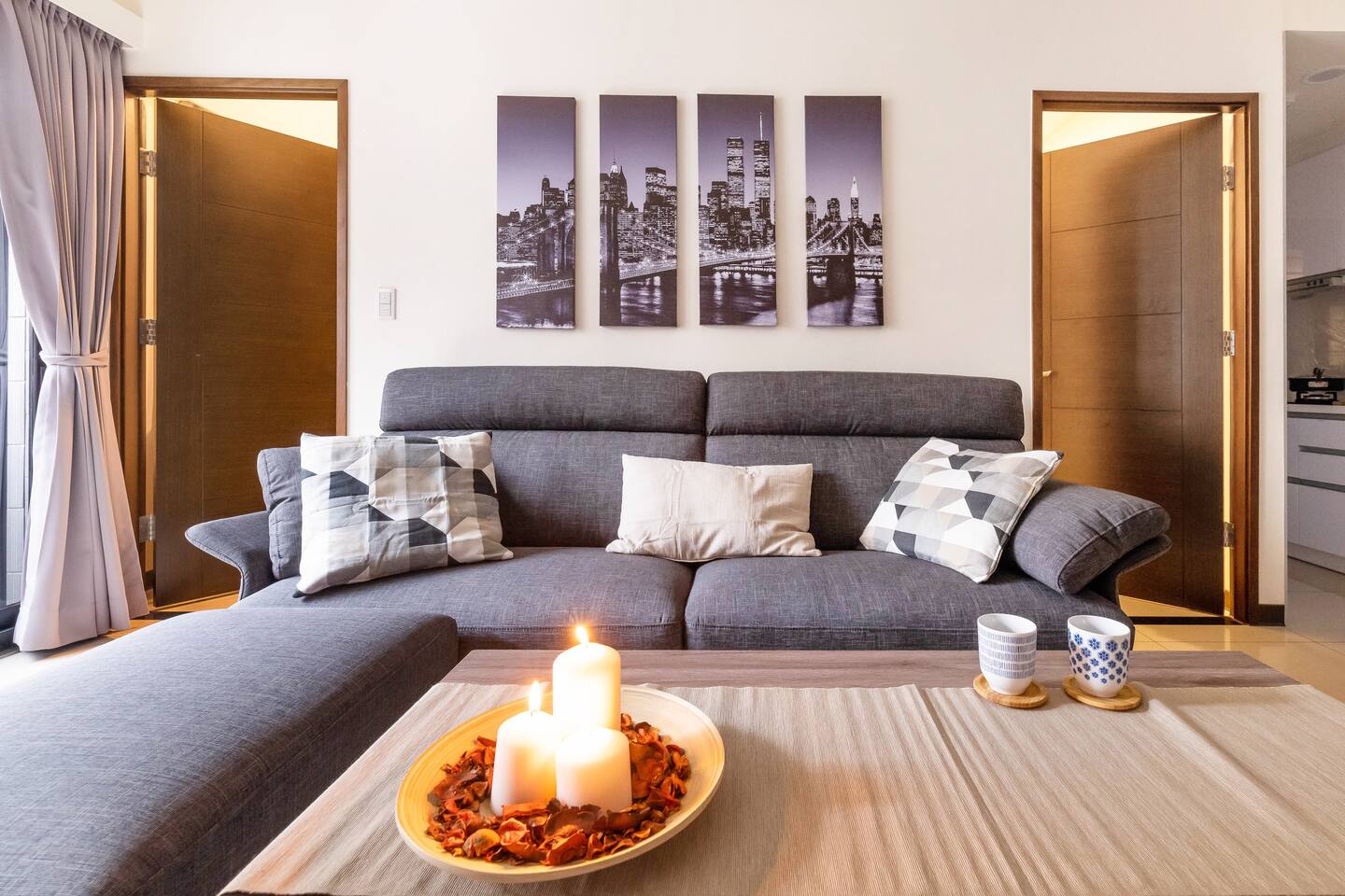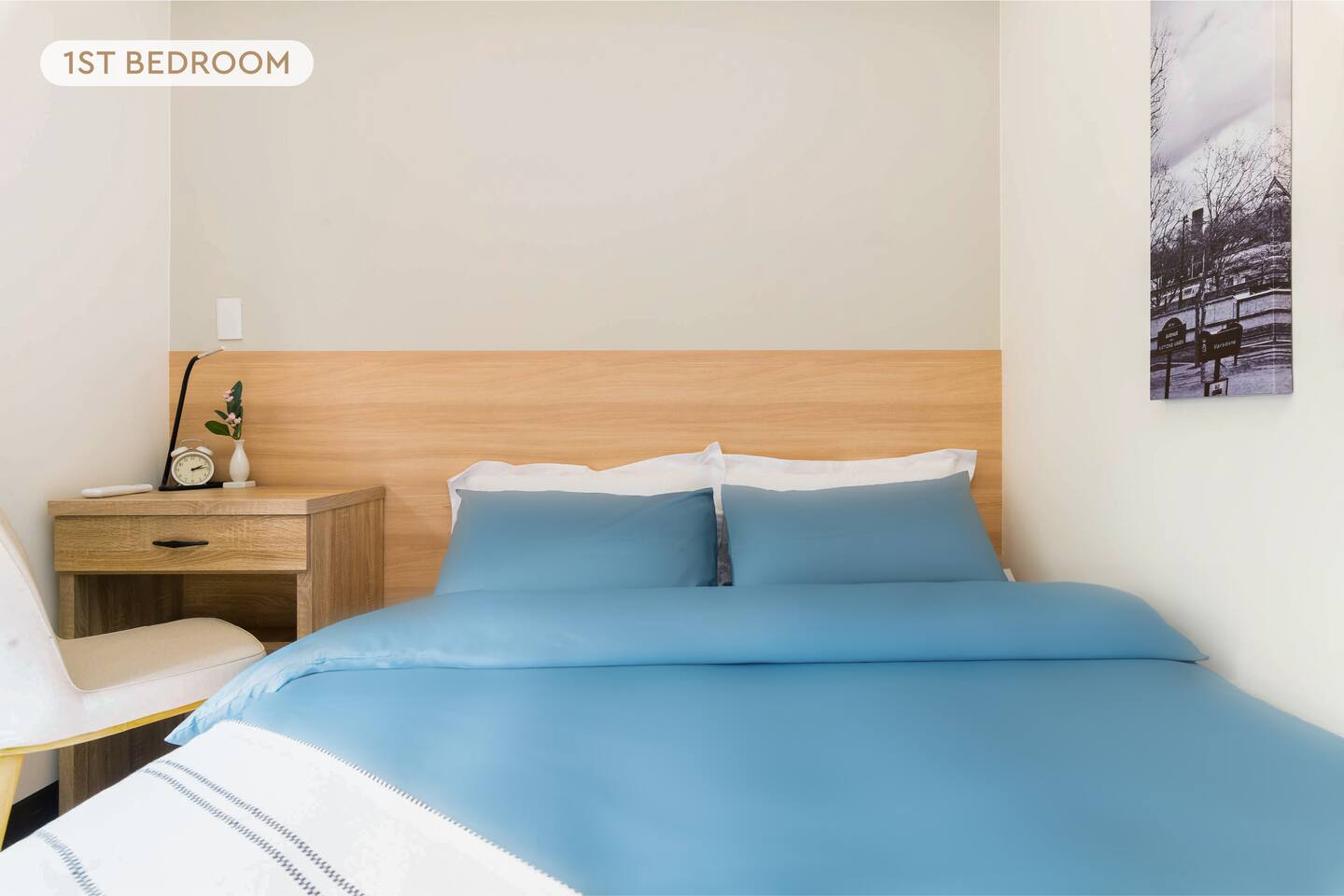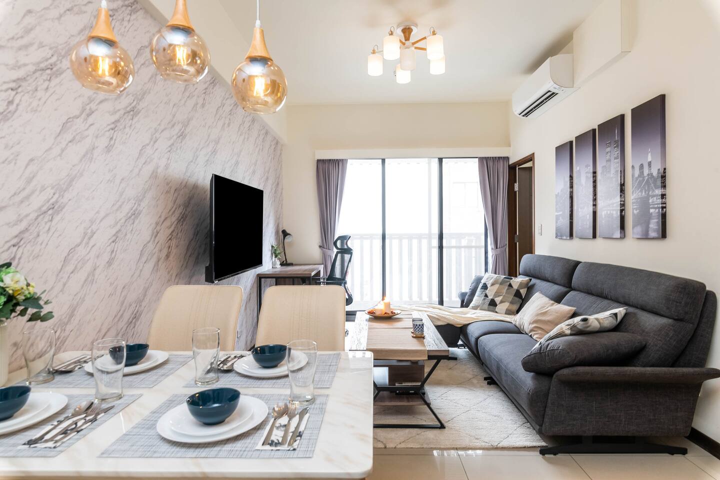 ★ Comfortable Living Room: • 55" Smart TV & TV Box • Comfy Sofa • Coffee Table • Desk & Office Chair • Ample Natural Lighting • Open Space with Dining Area ★ Elegant Dining Area: • Dining Table • Seating for 4 • Open Space with Living Room ★ Fully Equipped Kitchen: • Rice Cooker • Microwave • Toaster Oven • Electric Kettle • Cookware • Dinnerware • Cleaning Supplies ★ Convenient 1st Bedroom: • Double-Sized Bed • Desk & Chair • Closet • Natural Lighting ★ Cozy 2nd Bedroom: • Double-Sized Bed • Bedside Table • Closet • Natural Lighting ★ Bathroom: • Shower Stall • Japanese Heated Bidet Toilet • Dehumidifying System • Essential Toiletries Provided • Hairdryer Provided • Towels Provided ★ Convenient Service Balcony: • Washer • Dryer • Detergent • Cleaning Supplies • Ironing Board & Iron (Stored in the Apartment)