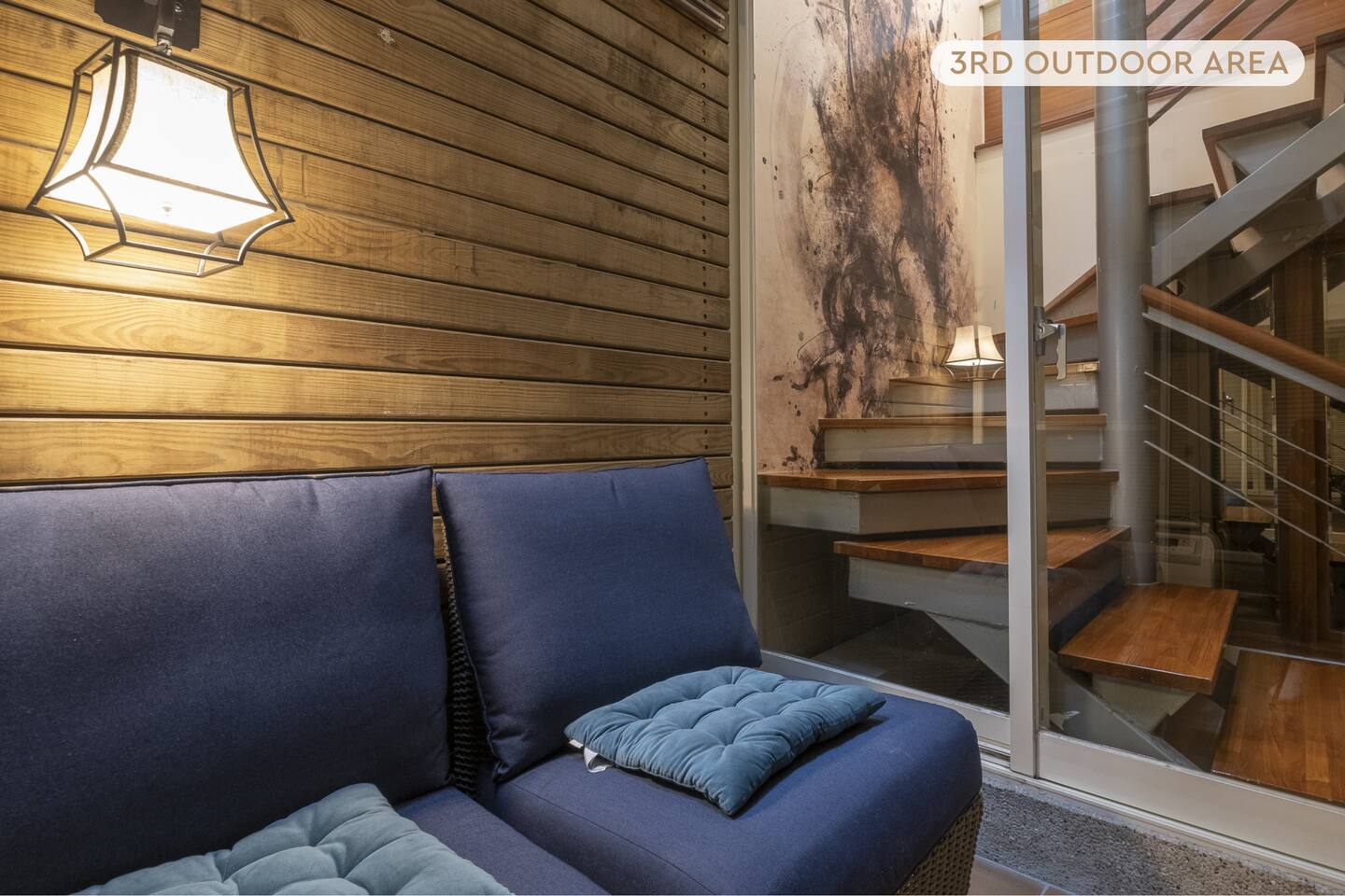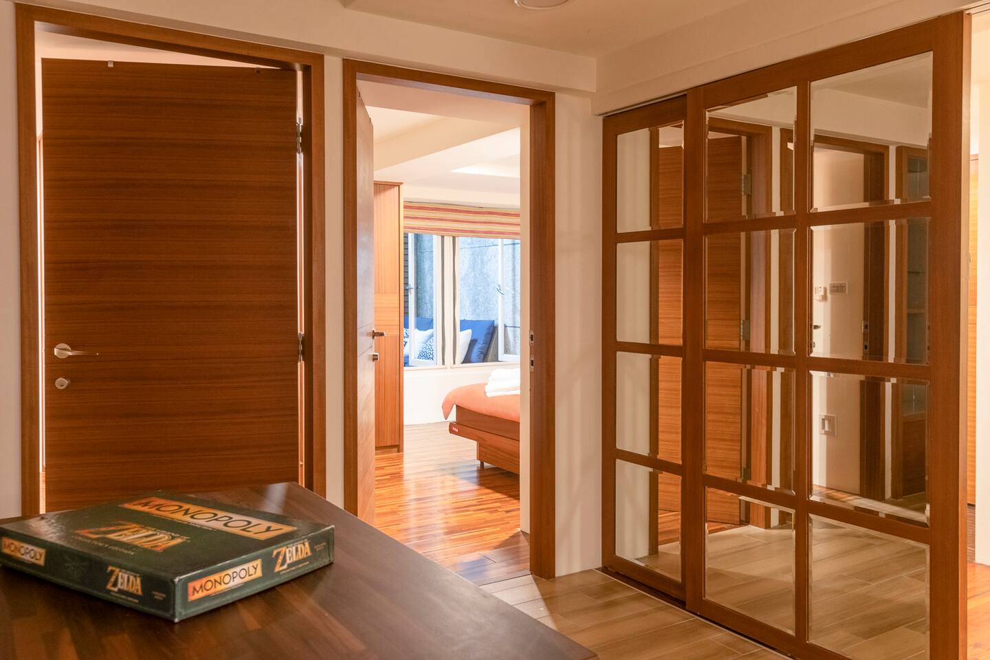 ★ Bright and Spacious Living Room: • 65" Smart TV & MOD Channels • Huge comfortable Sofa • Coffee Tables • Ample Natural Lighting • Open Space with Dining Area ★ Convenient Dining Area: • Dining Table • Seating for 6 (Room for up to 10) • Open Space with Living Room ★ Fully Equipped Kitchen: • Rice Cooker • Microwave • Toaster Oven • Electric Kettle • Cookware • Dinnerware • Cleaning Supplies ★ 1st Bedroom (Main Floor): • Double-sized Bed • Large Closet • Large Desk & Office Chair • Easy Access to 2nd Bedroom (Each Still Have Their Individual Door) ★ 2nd Bedroom (Main Floor): • Double-sized Bed • Shelving Space • Easy Access to 1st Bedroom (Each Still Have Their Individual Door) ★ Comfy 3rd Bedroom (Lower Floor): • Double-Sized Bed • Closet • Desk & Office Chair • Natural Lighting ★ Spacious 4th Bedroom (Lower Floor): • Double Bed • Large Closet • Ample Shelving Space ★ Relaxing 1st Bathroom (Main Floor): • Toilet & Sink • Bathtub & Shower • Essential Toiletries Provided • Hairdryer Provided • Towels Provided ★ 2nd Bathroom (Main Floor): • Toilet, Sink & Shower Stall • Essential Toiletries Provided • Hairdryer Provided • Towels Provided ★ 3rd Bathroom (Lower Floor): • Toilet, Sink & Shower Stall • Essential Toiletries Provided • Hairdryer Provided • Towels Provided ★ Convenient Service Balcony (1st Outdoor Area): • Washer • Dryer • Detergent • Sink • Cleaning Supplies • Ironing Board & Iron (Stored in the Apartment) ★ Fun Family Game Room (Lower Floor): • Game Table • Seating • Board Games ★ Relaxing 2nd Outdoor Area Attached to 3rd Bedroom: • Cushion Seating • Coffee Table • Natural Lighting ★ 3rd Outdoor Space (Lower Floor): • Cushion Seating • Coffee Table • Direct Access to 5th Bedroom