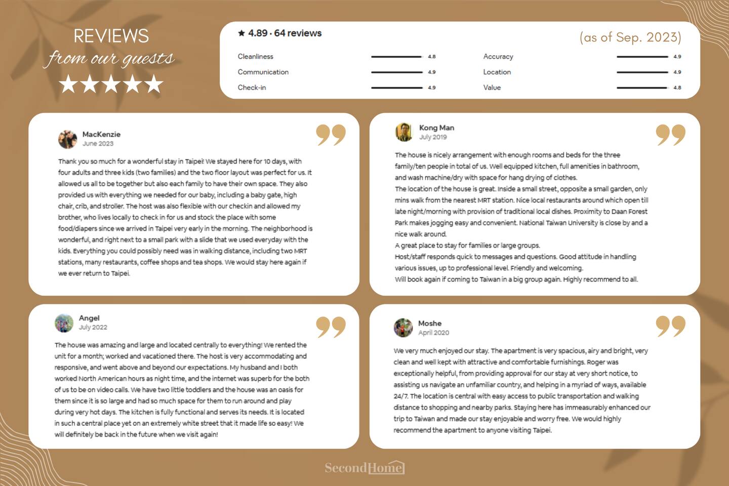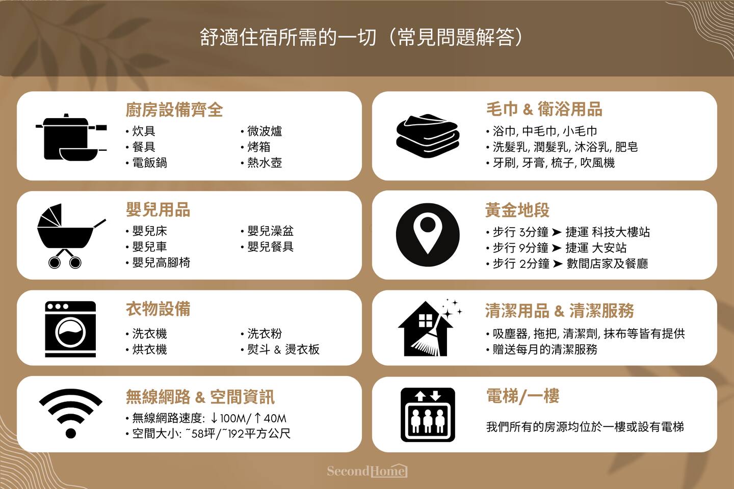 Centrally located (all times in walking distance): ✔ Two great commercial areas immediately within a few minute walk and cheap eateries, restaurants, nice stores, and other great places are added into your daily life. ✔ 90 secs to convenience store ✔ 10 secs to nearby park, ✔ 7-min to Daan Forest Park, ✔ 3-min to grocery store and cleaners, ✔ 7-min to NTU, ✔ 8-min to the NTU CLD, ✔ 5-min to the World Gym ✔ 4-min to Taipei's Daan Gym.