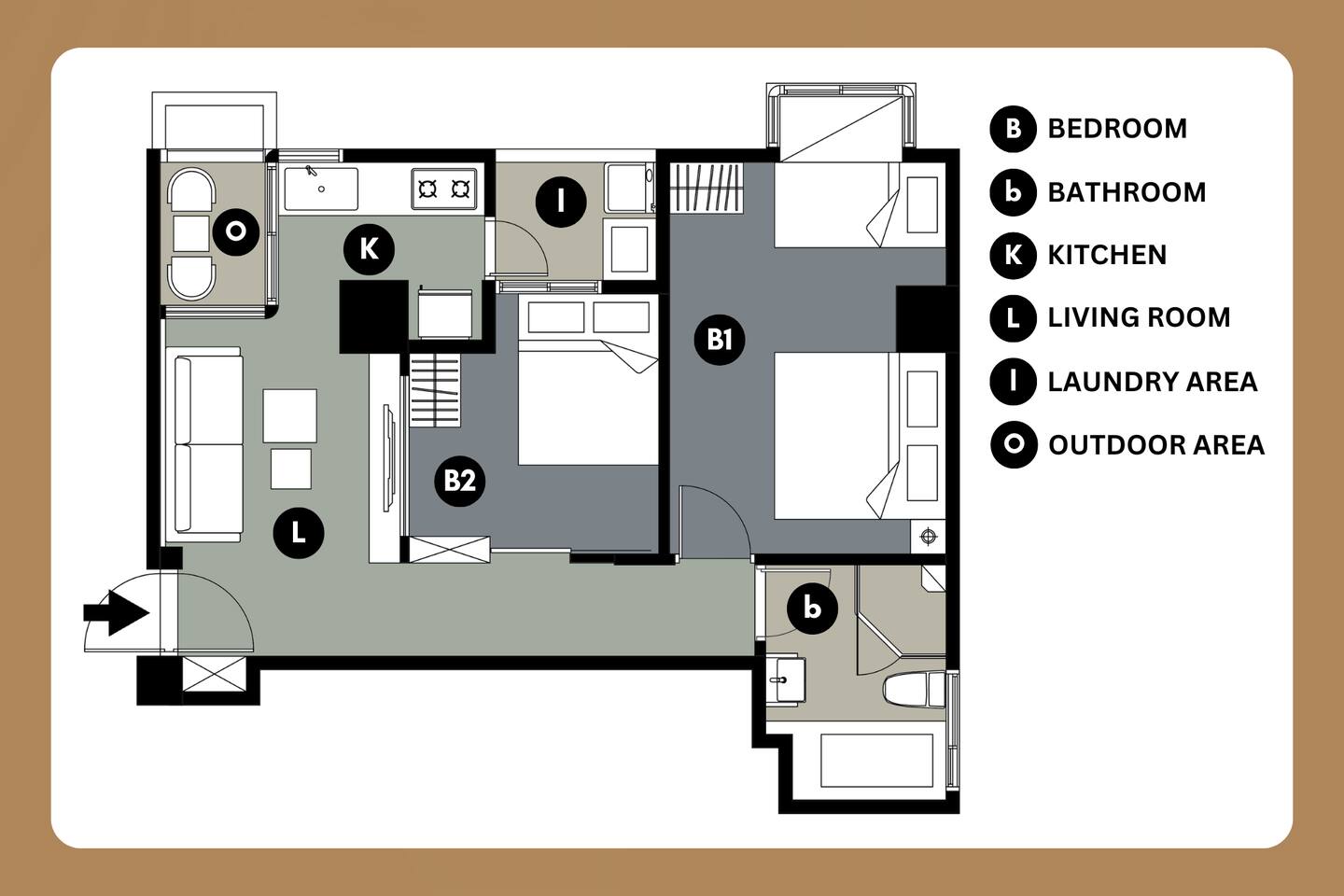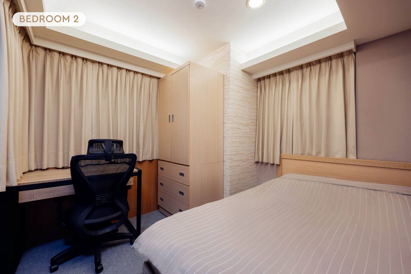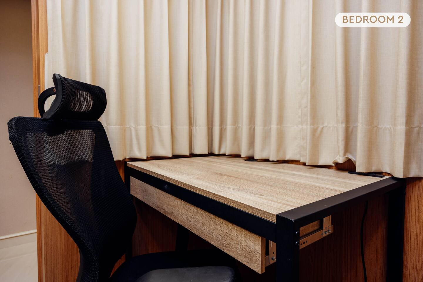 ★ Cozy Living Room: • Flat Screen TV & MOD Channels • Speaker • Comfy Sofa • Tables • Natural Lighting ★ Simple Yet Fully Equipped Kitchen: • Rice Cooker • Microwave • Toaster Oven • Electric Kettle • Cookware • Dinnerware • Cleaning Supplies ★ Spacious 1st Bedroom: • Queen-Sized Bed • Single-Sized bed • Closet • Foldable desk & chair • Amplifier (for your music) ★ Comfy 2nd Bedroom: • Double-Sized Bed • Closet • Foldable Desk & Chair ★ Relaxing Bathroom: • Shower Stall • Bathtub • Japanese Heated Bidet Toilet • Essential Toiletries Provided • Towels Provided • Speakers (connected to the bedroom amplifier) ★ Relaxing Outdoor Area: • Outdoor Chairs • Coffee Table ★ Convenient Service Balcony: • Washer-Dryer Combo • Detergent • Sink • Cleaning Supplies • Ironing Board & Iron (Stored in the Apartment)