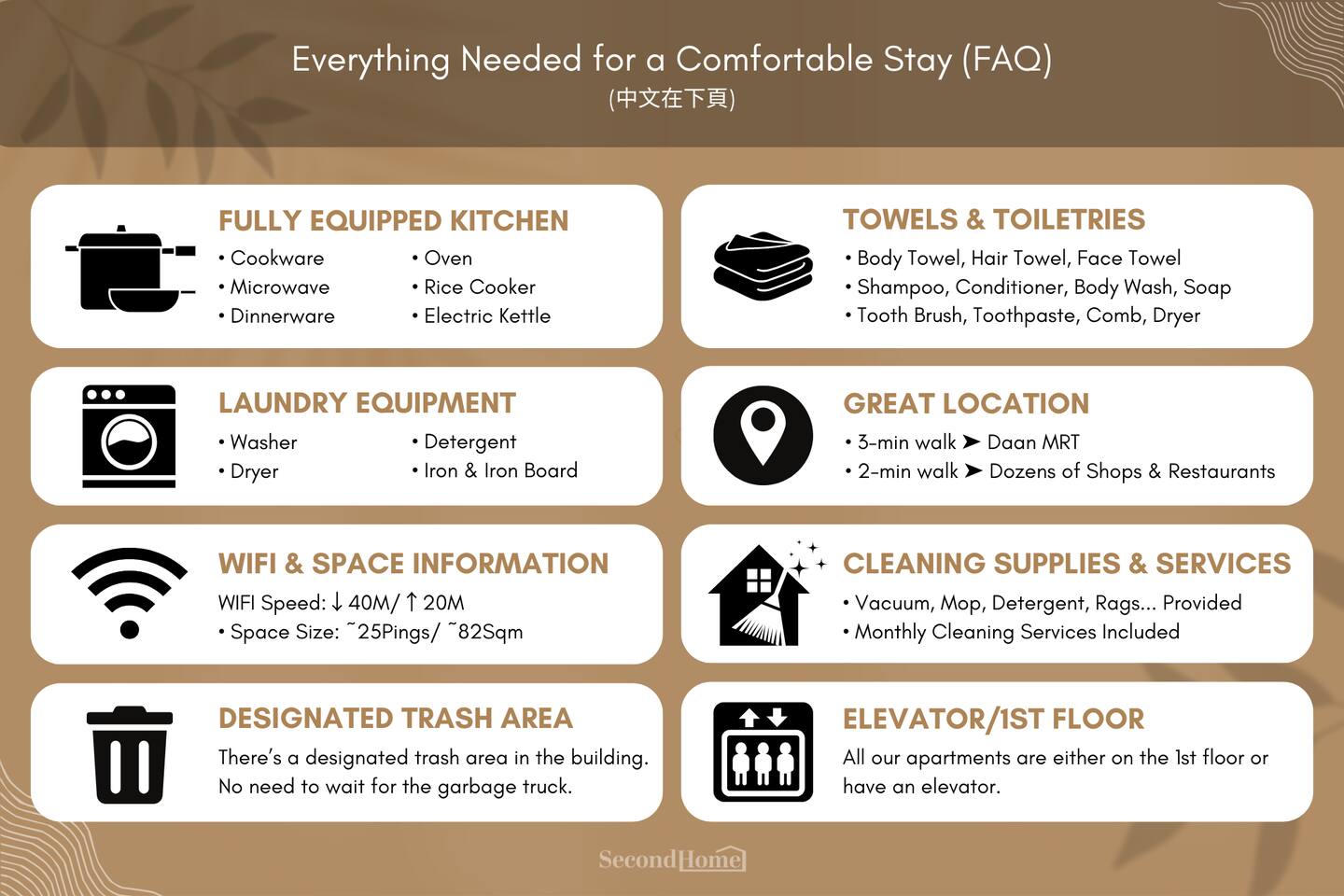 Comfy & Central 2B1b, Sleeps 5, 3min to Daan MRT 舒適市中心 2房1衛 睡5人 3分到大安站