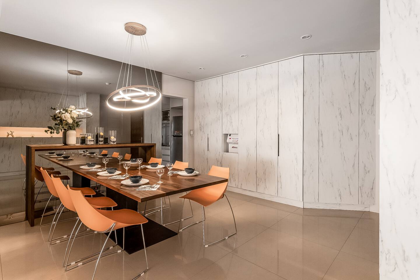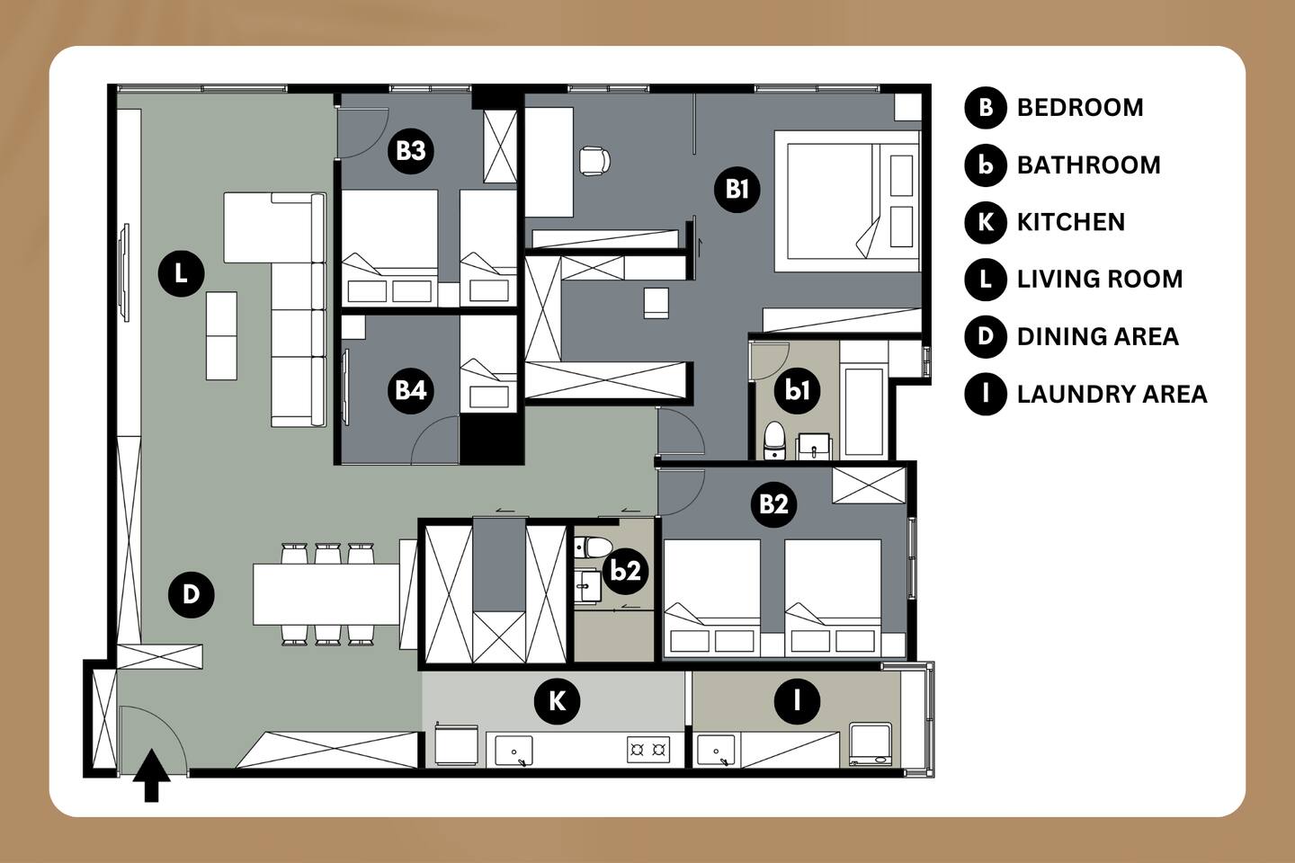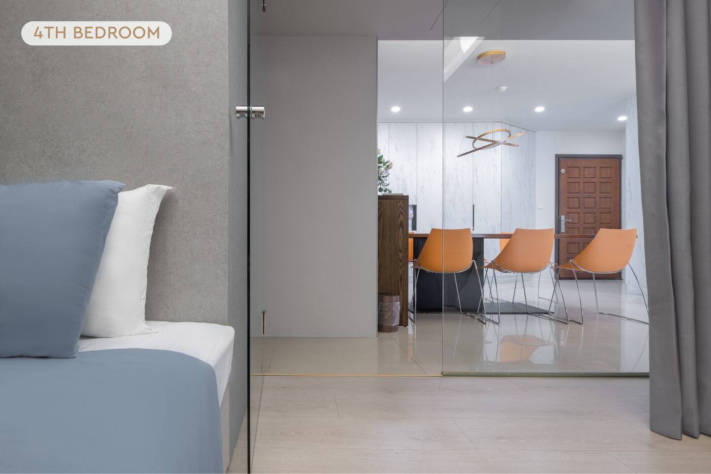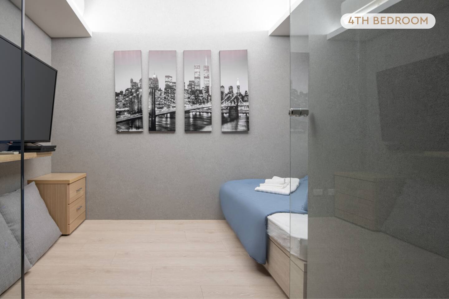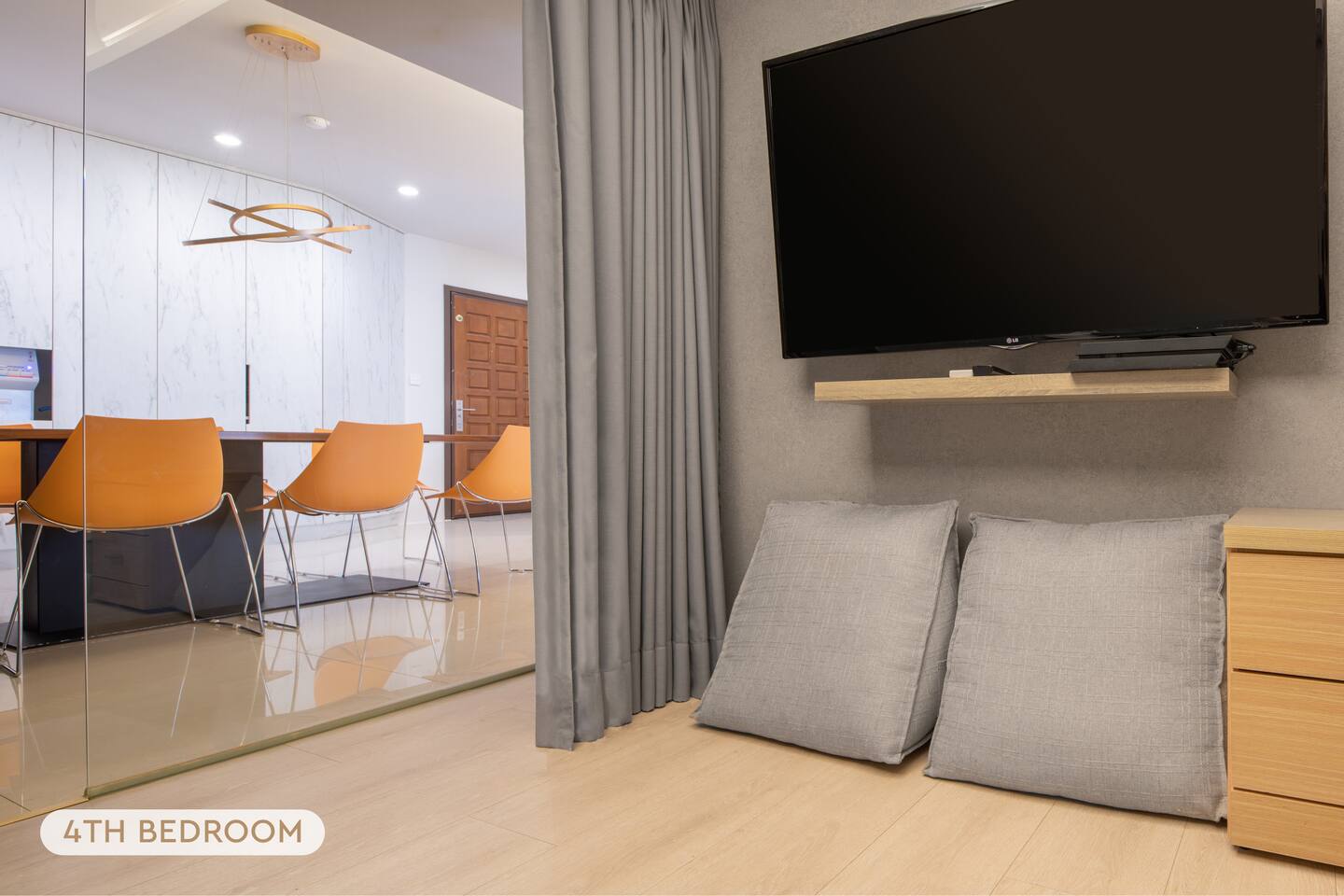 ★ Beautiful and Spacious Living Room: • 70" Flat Screen Smart TV & MOD Channels • Large Comfy Sofa • Coffee Table • Open Space with Dining Area • Ample Natural Lighting • Great View from Window ★ Stylish Dining Area: • Large Dining Table • Seating for 6 • Water Cooler • Open Space with Living Room • Perfect for sharing meals with friends and family ★ Fully Equipped Kitchen: • Rice Cooker • Microwave • Toaster Oven • Electric Kettle • Cookware • Dinnerware • Cleaning Supplies ★ Beautiful 1st (Master) Bedroom: • King-Sized Bed • Bedside Table • Shelving Cabinet • Private Attached Office • Private Walk-In Closet • Private Attached Bathroom • Ample Natural Lighting ★ Cozy 2nd Bedroom: • 2 Double-Sized Bed • Bedside Tables • Closet • Natural lighting ★ Cozy 3rd Bedroom: • Double-Sized Bed • Closet • Desk & Office Chair • Ample Natural lighting ★ Entertaining 4th Bedroom: • Single-Sized Bed (90x150cm) • 55" TV • PS4 • Floor Seating ★ Relaxing 1st Bathroom Attached to 1st Bedroom: • Toilet & Sink • Bathtub & Shower • Essential Toiletries Provided • Towels Provided ★ 2nd Bathroom: • Toilet & Sink • Shower Stall with Shower Panel • Essential Toiletries Provided • Towels Provided ★ Convenient Service Balcony: • Washer • Dryer • Detergent • Sink • Cleaning Supplies • Ironing Board & Iron (Stored in the Apartment) • Nice View from Window ★ Spacious Private Office Attached to 1st Bedroom: • Office Chair • Height Adjustable Desk (Sitting or Standing, Any Height From 60-130 cm) • Bookshelves • Ample Natural Lighting ★ Additional Large Walk-in Closet ★ Tastefully Decorated