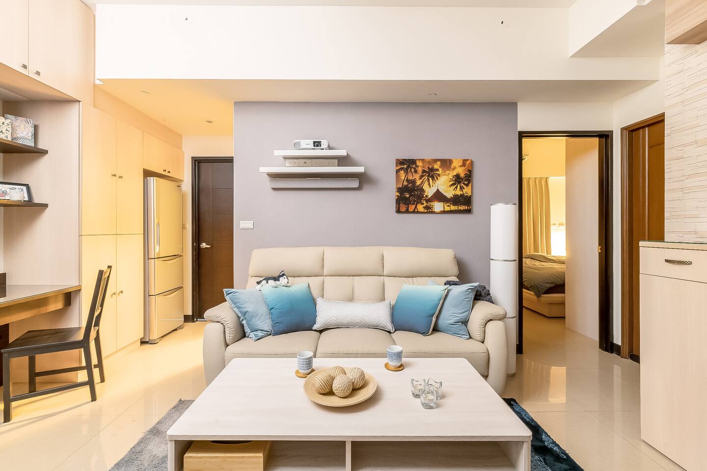 Experience comfort and convenience in this 2B1b attached to Taipei Main Station. A fully equipped kitchen, a living room with a projector for a cinematic experience, and a relaxing outdoor area. Your Taipei adventure awaits you.