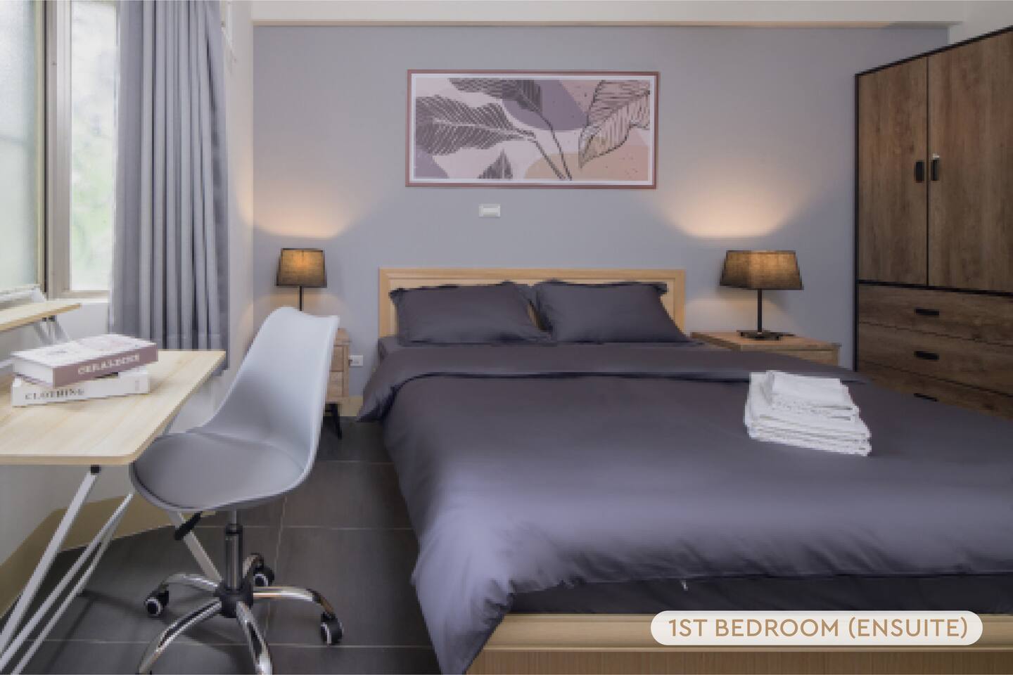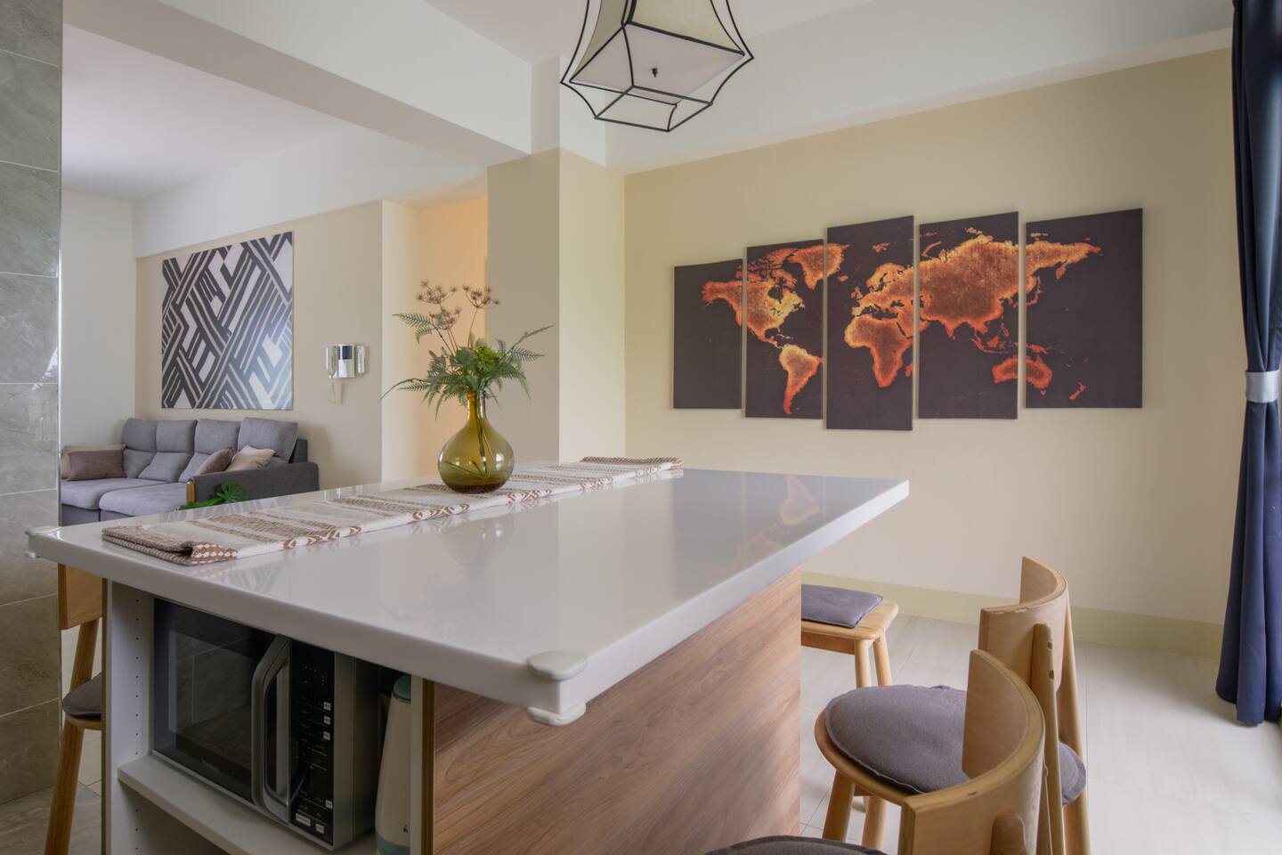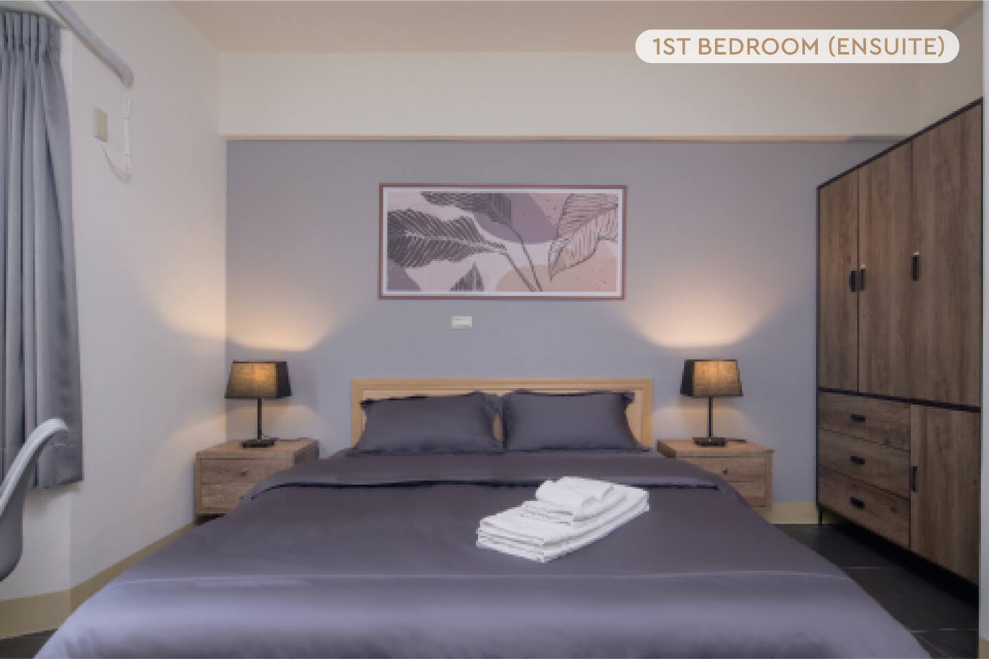 ★ Warm & Spacious Living Room: • 55" Smart TV & TV Box • Cozy Sofa • Coffee Table • Natural Lighting • Open Space w/ Dining Area ★ Spacious Dining Area: • Dining Table • Seating for 6 • Open Space w/ Kitchen & Living Room • Perfect for sharing meals with friends and family ★ Fully Equipped Kitchen: • Rice Cooker • Microwave • Toaster Oven • Electric Kettle • Cookware • Dinnerware • Cleaning Supplies • Natural Lighting • Open Space w/ Dining Area ★ Spacious 1st Bedroom (Master): • King-Sized Bed • Bedside Tables • Closet • Desk & Chair • Ample Natural Lighting • Private Attached Bathroom ★ Cozy 2nd Bedroom: • Double-Sized Bed • Bedside Table • Closet • Natural Lighting ★ Cozy 3rd Bedroom: • Double-Sized Bed • Bedside Table • Closet • Natural Lighting ★ 1st Bathroom Attached to 1st Bedroom: • Sink & Toilet • Shower Stall • Essential Toiletries Provided • Hairdryer Provided • Towels Provided ★ 2nd Bathroom: • Toilet, Sink & Shower Stall • Essential Toiletries Provided • Hairdryer Provided • Towels Provided ★ Convenient Service Balcony: • Washer • Dryer • Detergent • Cleaning Supplies • Ironing Board & Iron (Stored in the Apartment)