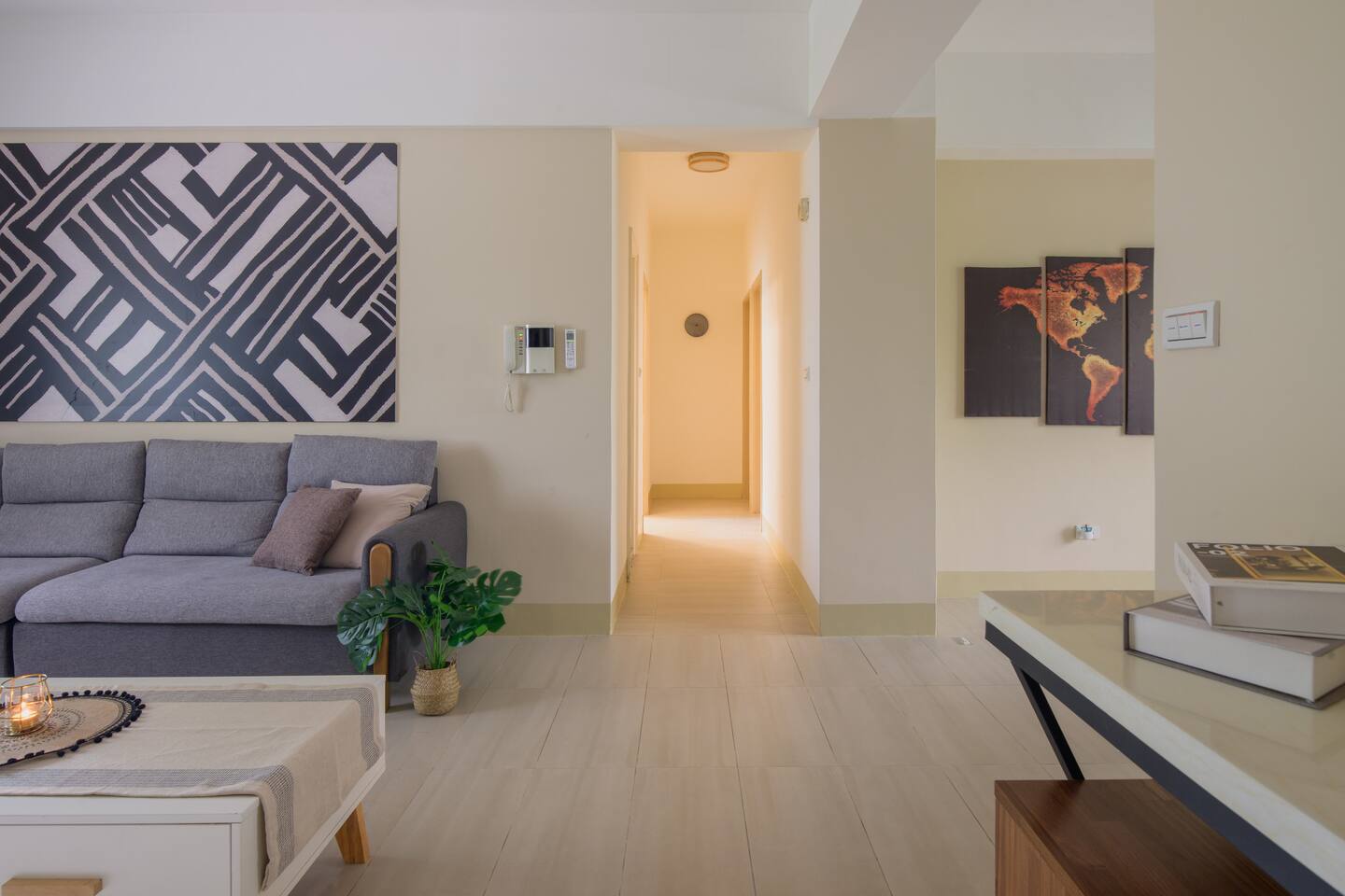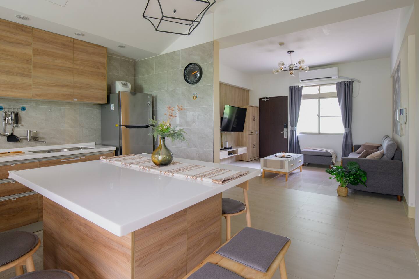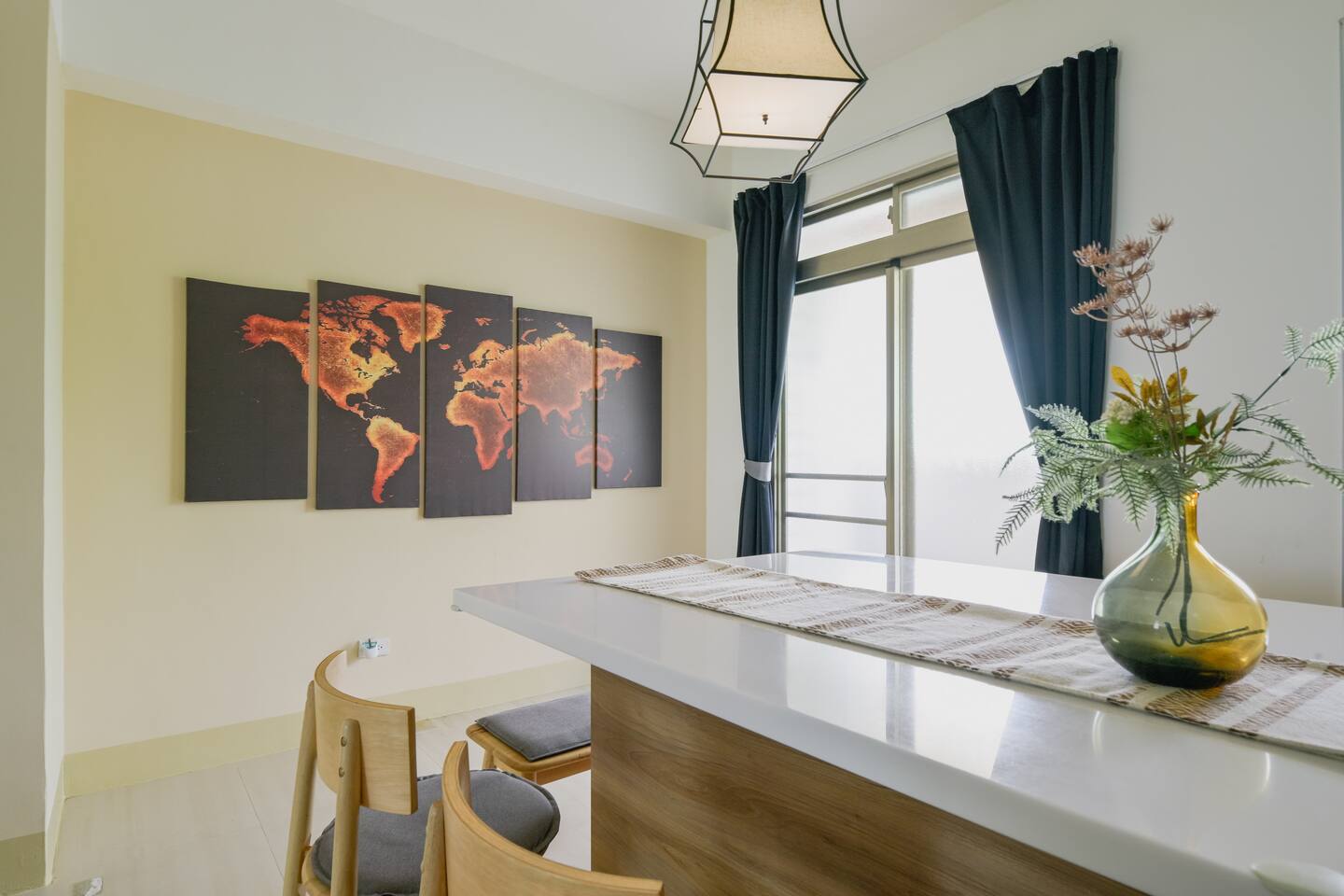 ★ Warm & Spacious Living Room: • 55" Smart TV & TV Box • Cozy Sofa • Coffee Table • Natural Lighting • Open Space w/ Dining Area ★ Spacious Dining Area: • Dining Table • Seating for 6 • Open Space w/ Kitchen & Living Room • Perfect for sharing meals with friends and family ★ Fully Equipped Kitchen: • Rice Cooker • Microwave • Toaster Oven • Electric Kettle • Cookware • Dinnerware • Cleaning Supplies • Natural Lighting • Open Space w/ Dining Area ★ Spacious 1st Bedroom (Master): • King-Sized Bed • Bedside Tables • Closet • Desk & Chair • Ample Natural Lighting • Private Attached Bathroom ★ Cozy 2nd Bedroom: • Double-Sized Bed • Bedside Table • Closet • Natural Lighting ★ Cozy 3rd Bedroom: • Double-Sized Bed • Bedside Table • Closet • Natural Lighting ★ 1st Bathroom Attached to 1st Bedroom: • Sink & Toilet • Shower Stall • Essential Toiletries Provided • Hairdryer Provided • Towels Provided ★ 2nd Bathroom: • Toilet, Sink & Shower Stall • Essential Toiletries Provided • Hairdryer Provided • Towels Provided ★ Convenient Service Balcony: • Washer • Dryer • Detergent • Cleaning Supplies • Ironing Board & Iron (Stored in the Apartment)