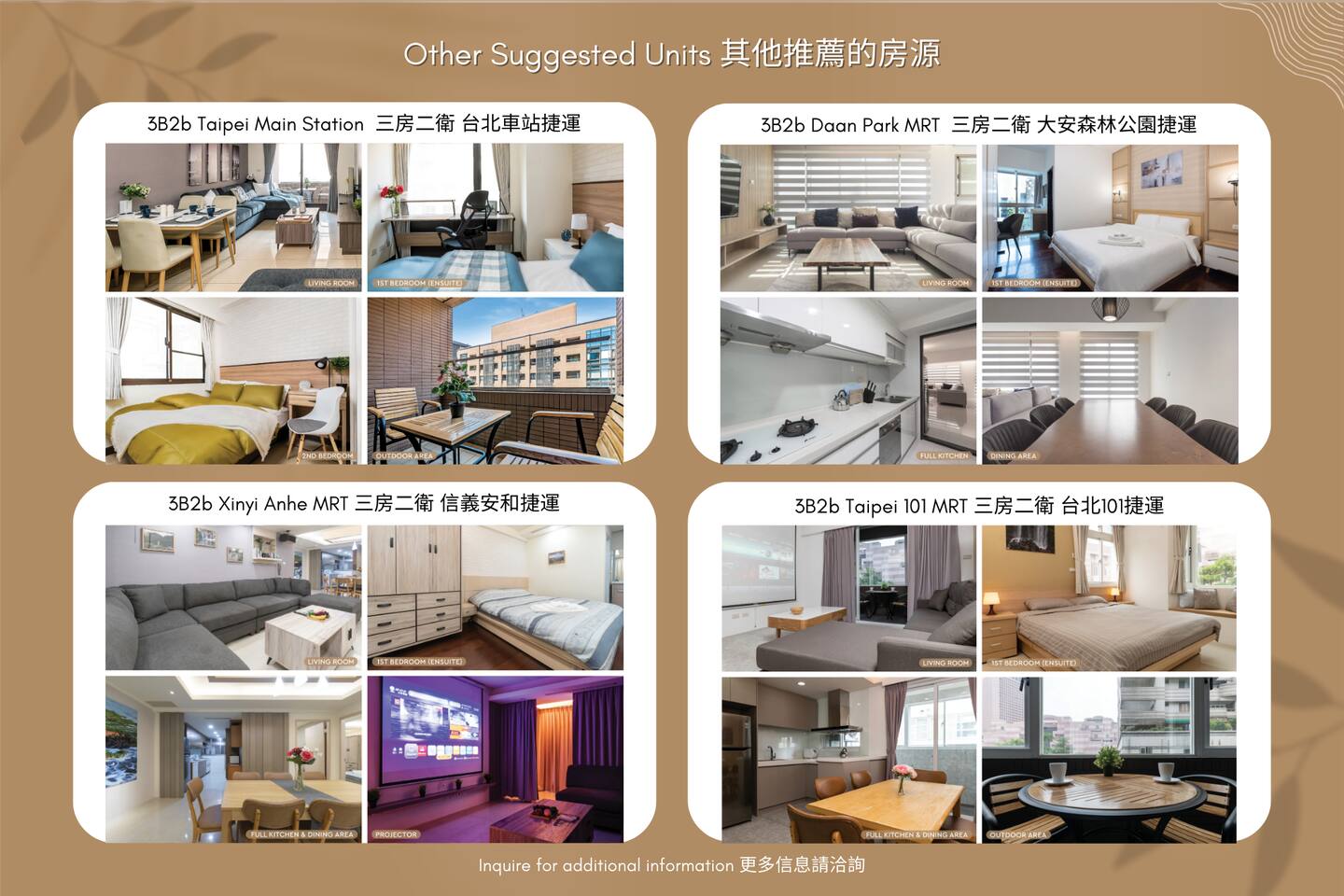 Discover the perfect blend of style and convenience in our beautifully designed 3-bedroom, 2-bathroom apartment, ideally situated a mere 4-minute stroll from the World Trade Center/Taipei 101 MRT station. Step into the spacious living area, flooded with warm natural light, and find a fully equipped kitchen ready to satisfy your culinary desires. The open living and dining space beckons you to relax and socialize, while a dedicated private workspace awaits for your productivity needs.