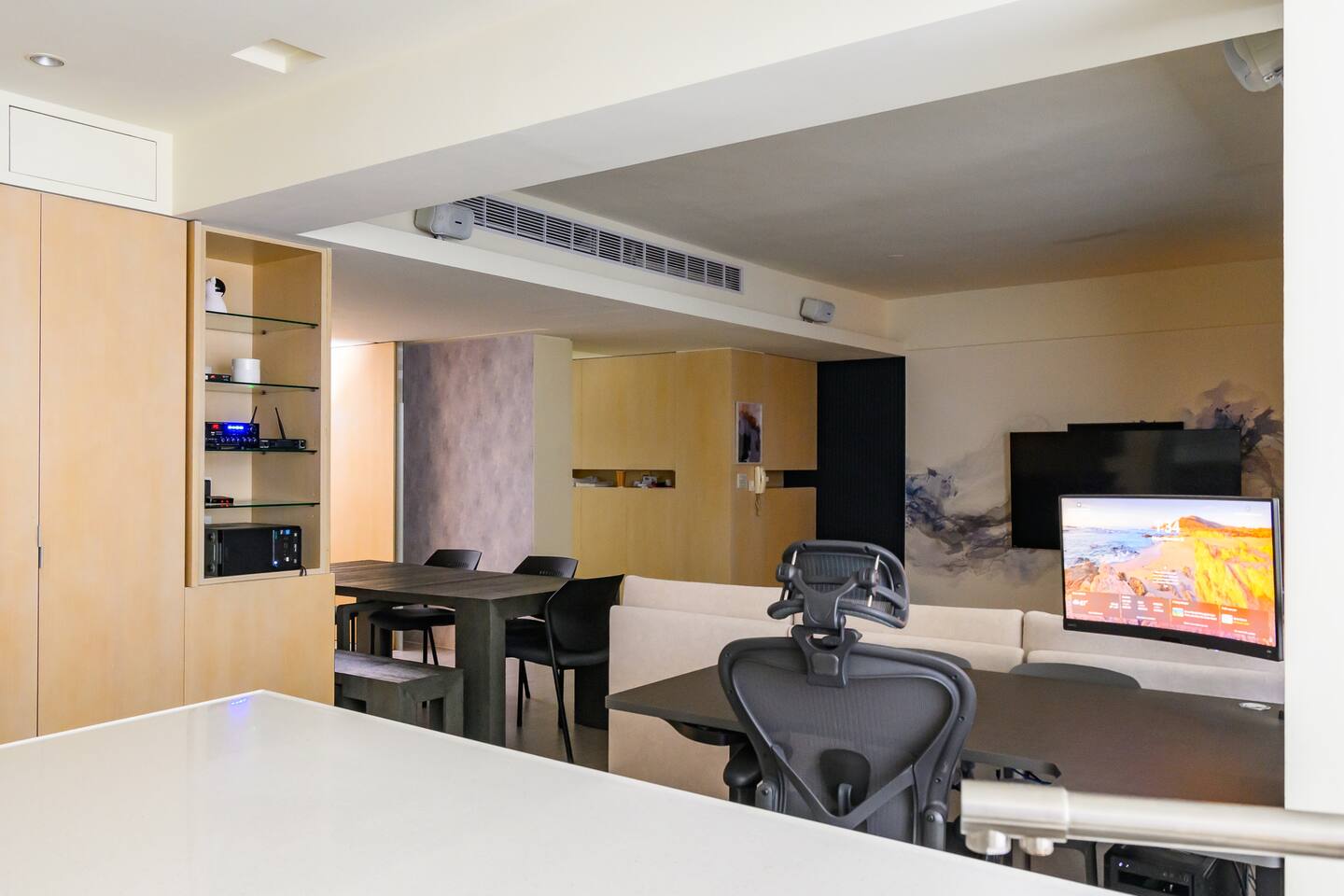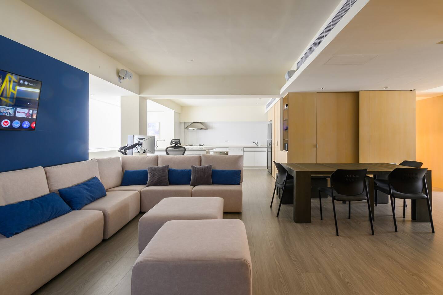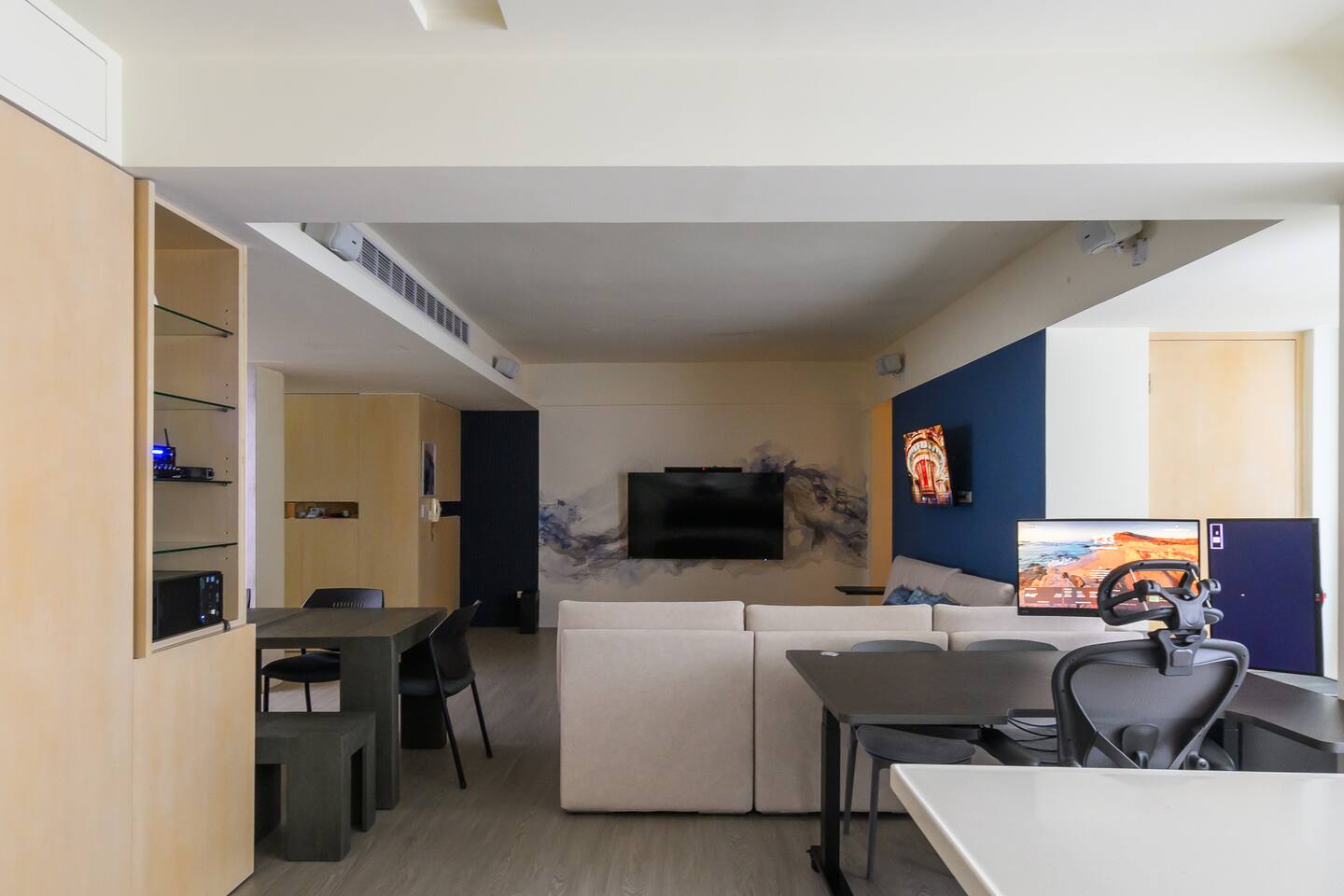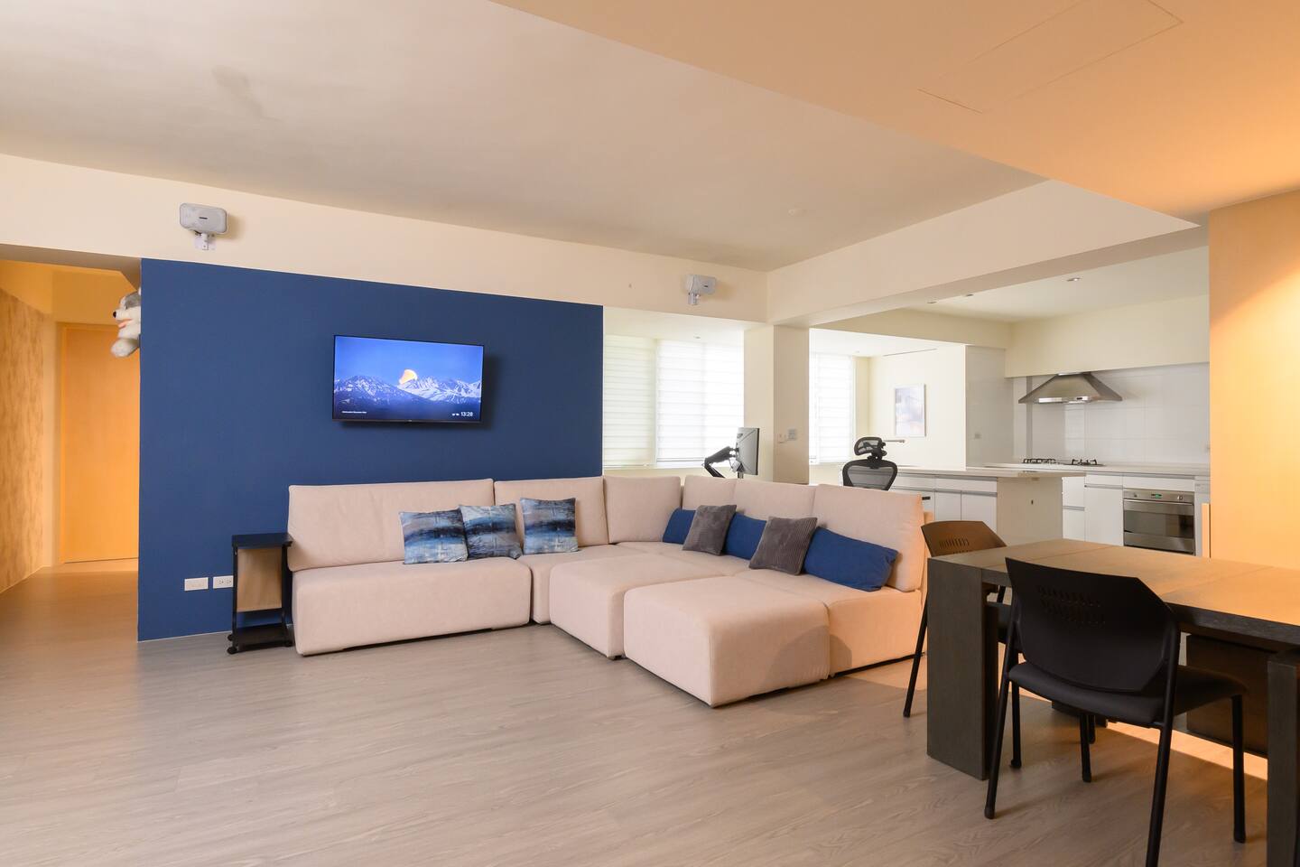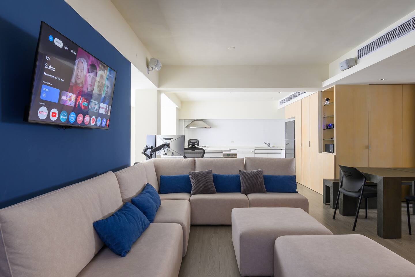 ★ Spacious & Stylish Living Room: • 70"" Smart TV w/TV Box • 43"" Smart TV Monitor • Soundbar system • Comfortable Modular Sofa (Seating for 6) • Open Space w/Workspace, Kitchen & Dining Area ★ Convenient Workspace: • Herman Miller Office Chair • Height Adjustable Desk (Sitting or Standing) • Ample Natural Lighting • Open Space w/Living Room, Kitchen & Dining Area ★ Open Space Dining Area: • Dining Table • Seating for 6 • Open Space w/Living Room & Kitchen ★ Fully Equipped Large Kitchen: • Dishwasher • Rice Cooker • Microwave • Oven • Air fryer • Electric Kettle • Cookware • Dinnerware • Kitchen Island w/Sink • Cleaning Supplies • Ample Natural Lighting ★ Master Bedroom (En-suite): • Extra Large King-sized Bed (124*259cm) • Bookshelves • Ample Natural Lighting • Private Attached Walk-in Closet w/Sauna • Private Attached Bathroom ★ Cozy 2nd Bedroom: • Double-sized Bed • Desk & Office Chair • Closet • Natural Light ★ Spacious & Relaxing Bathroom 1 Attached to Bedroom 1: • Bathtub & Shower • Japanese Heated Bidet Toilet • Dual Sink • Essential Toiletries Provided • Hairdryer Provided • Towels Provided • Attached to Walk-in Closet w/Sauna ★ Bathroom 2: • Shower Stall • Japanese Heated Bidet Toilet • Essential Toiletries Provided • Hairdryer Provided • Towels Provided ★ Convenient Service Balcony: • Washer • Dryer • Detergent • Cleaning Supplies • Iron Board & Iron (Stored in the Apartment) • Ample Natural Light