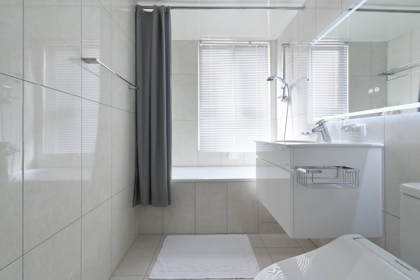 ★ Comfortable & Stylish Living Room: • 65" Smart TV & TV Channels • Comfy Sofa • Coffee Table • Open Space with Kitchen & Dining Area ★ Convenient Dining Area: • Dining Table • Seating for 4 • Open Space w/Living Room • Perfect for sharing meals with friends and family ★ Fully Equipped Kitchen: • Rice Cooker • Microwave • Toaster Oven • Electric Kettle • Cookware • Dinnerware • Cleaning Supplies ★ Comfortable Bedroom 1: • King-Sized Bed • Bedside Tables • Closet • Long Desk & an Office Chair • Natural Lighting ★ Cozy Bedroom 2: • Double-Sized Bed • Bedside Tables • Closet • Natural Lighting ★ Relaxing Bathroom: • Bathtub & Shower • Japanese Heated Bidet Toilet • Essential Toiletries Provided • Hairdryer Provided • Towels Provided ★ Convenient Service Balcony: • Washer • Dryer • Detergent • Cleaning Supplies • Iron Board & Iron (Stored in the Apartment) • Natural Light