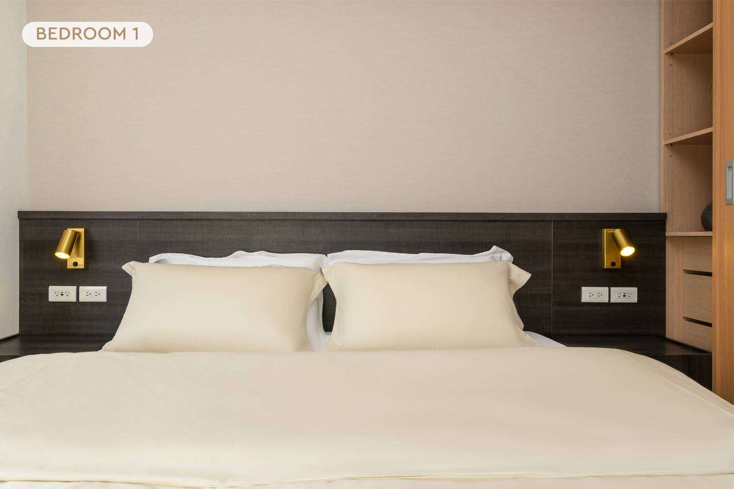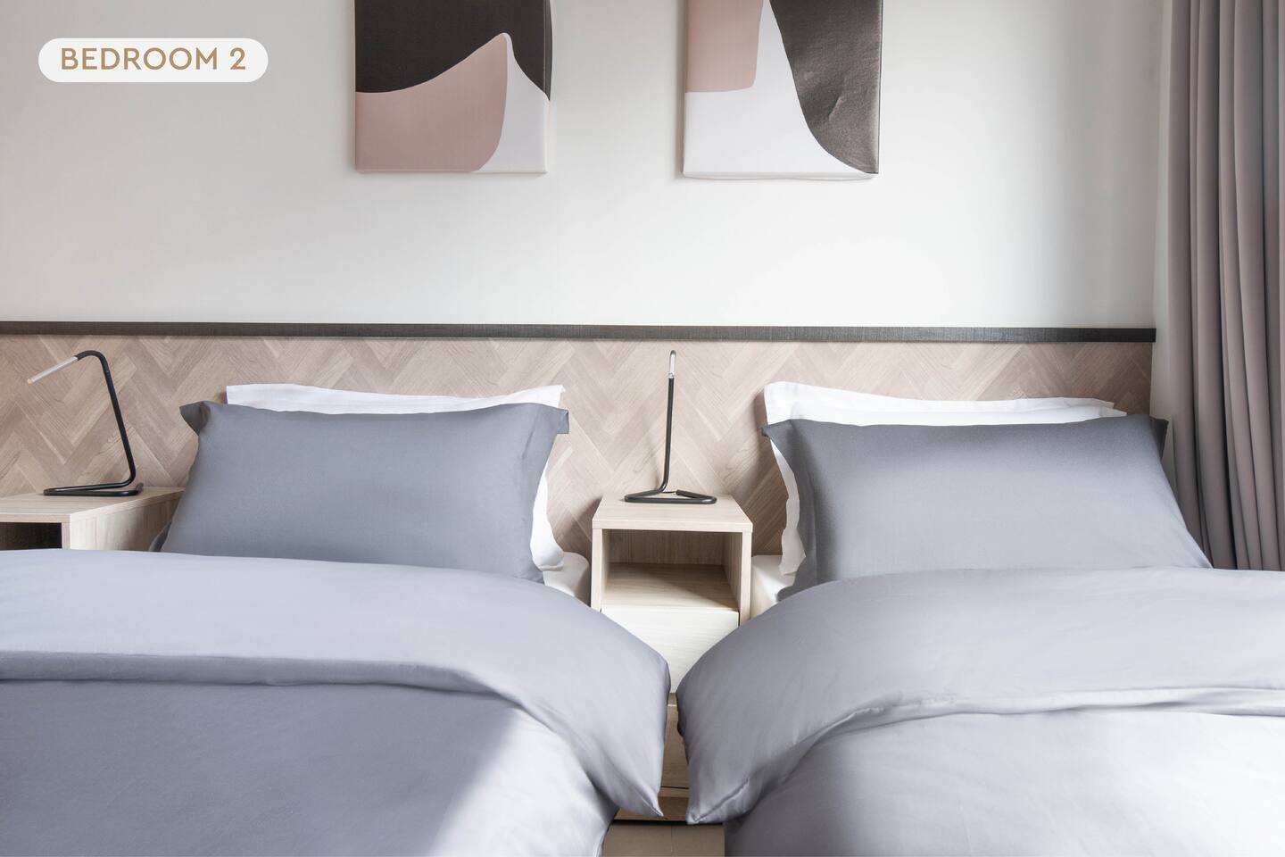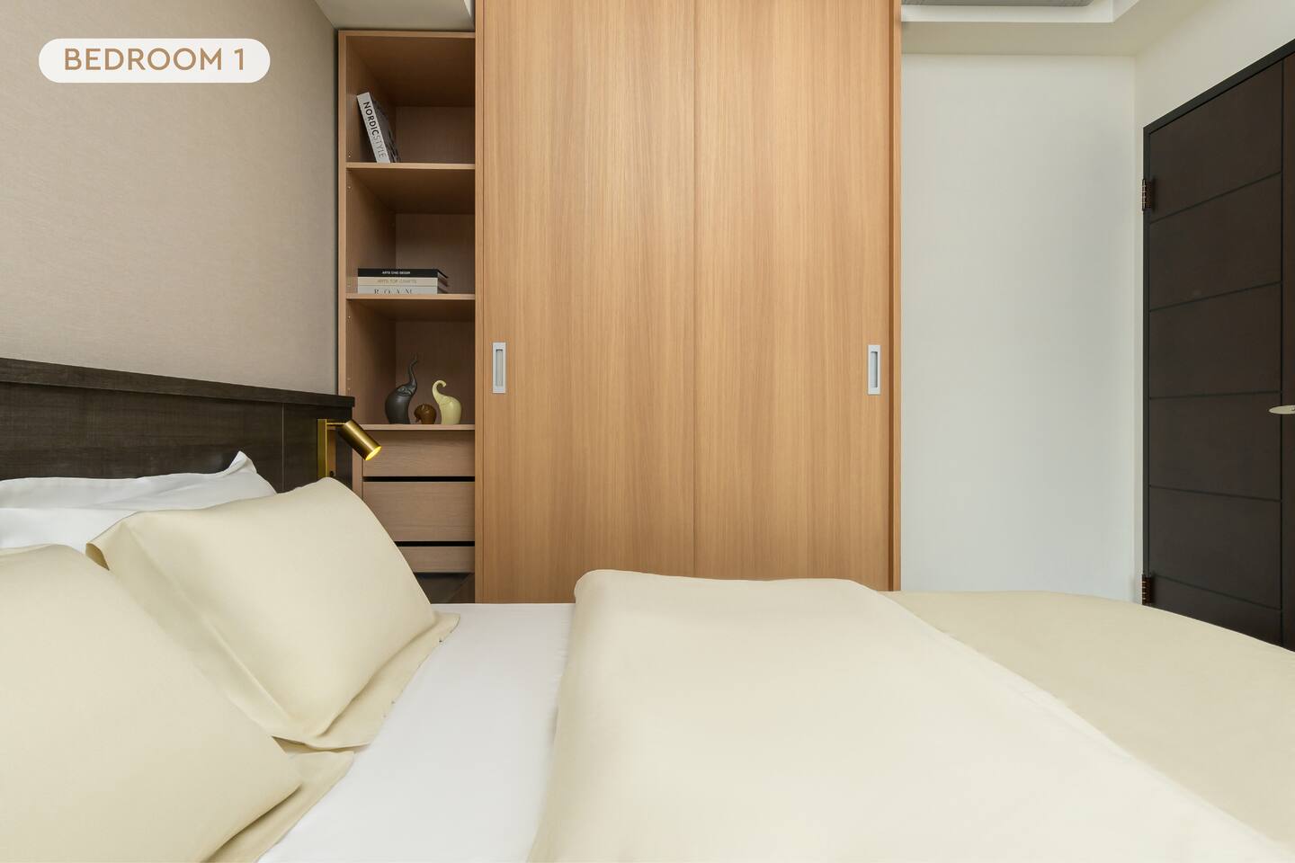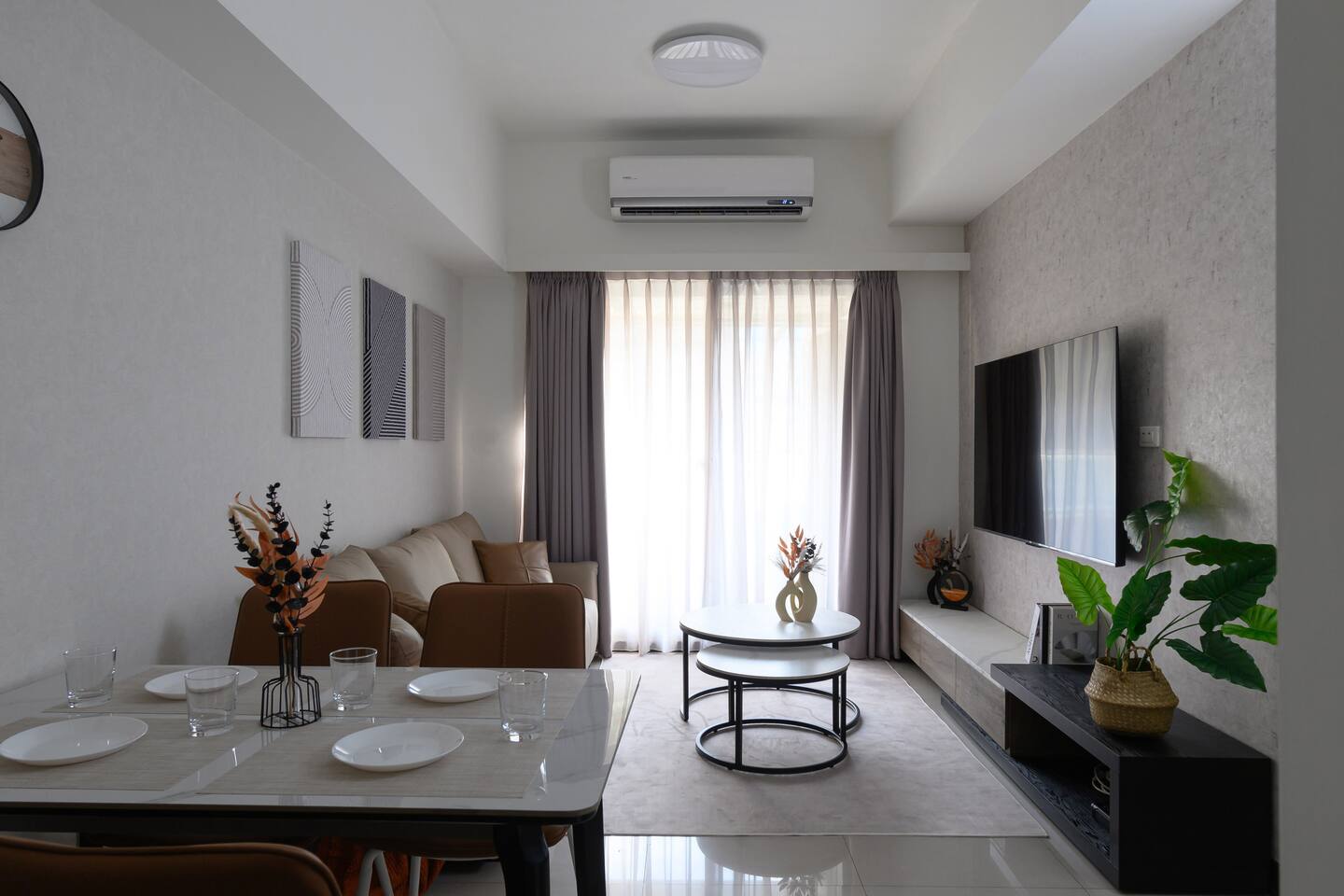 ★ Comfortable & Stylish Living Room: • 65" Smart TV & TV Channels • Comfy Sofa • Coffee Table • Open Space with Kitchen & Dining Area ★ Convenient Dining Area: • Dining Table • Seating for 4 • Open Space w/Living Room • Perfect for sharing meals with friends and family ★ Fully Equipped Kitchen: • Rice Cooker • Microwave • Toaster Oven • Electric Kettle • Cookware • Dinnerware • Cleaning Supplies ★ Comfortable Bedroom 1: • King-Sized Bed • Bedside Tables • Closet • Long Desk & an Office Chair • Natural Lighting ★ Cozy Bedroom 2: • 2 Single-Sized Beds • Bedside Tables • Closet • Natural Lighting ★ Relaxing Bathroom: • Bathtub & Shower • Japanese Heated Bidet Toilet • Essential Toiletries Provided • Hairdryer Provided • Towels Provided ★ Convenient Service Balcony: • Washer • Dryer • Detergent • Cleaning Supplies • Iron Board & Iron (Stored in the Apartment) • Natural Light