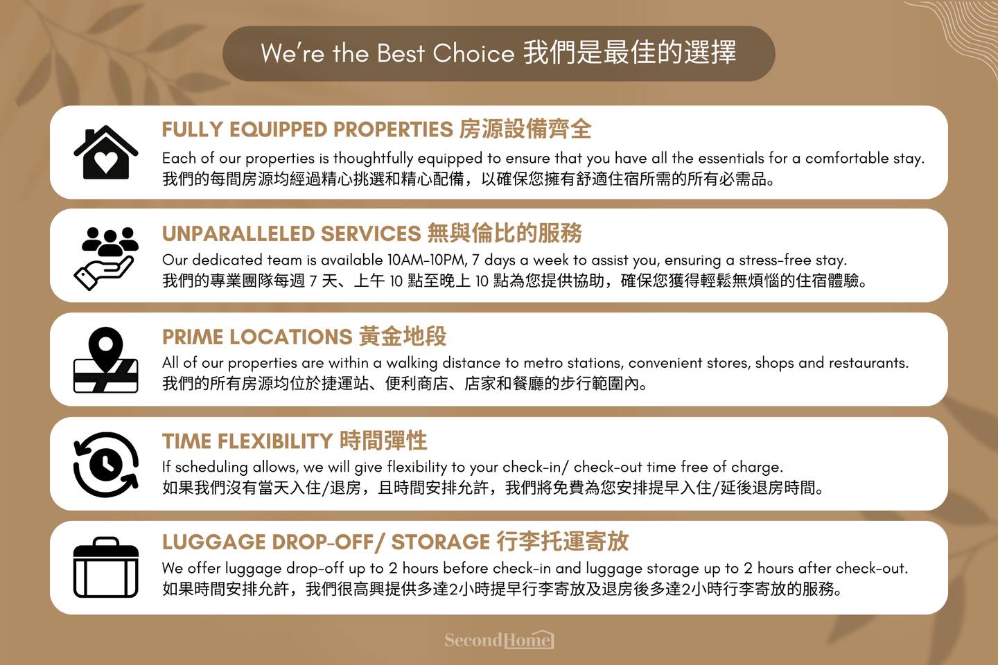 Here are some things that our properties have to offer. Feel free to browse our profile for a detailed list of fantastic stays. ✔ UNPARALLELED SERVICES Our dedicated team is available 10AM-10PM, 7 days a week to assist you, ensuring a stress-free stay. ✔ ELEVATORS: Each listing offers the convenience of an elevator in the building or is located on the 1st floor. ✔ PRIVACY: Each listing ensures complete privacy as they are not shared with anyone else. ✔ UTILITIES: The rental includes reasonable use of utilities and provides reliable wireless internet access. ✔ PRIME LOCATIONS: All of our properties are within a walking distance to metro stations, convenient stores, shops and restaurants ✔ FULLY EQUIPPED KITCHEN: Each listing has a fully equipped kitchen, with all the essentials for making your favorite home-cooked meals. ✔ LAUNDRY: Each listing has a washer and dryer (or washer-dryer combo) for your laundry needs, providing the utmost convenience and ensuring a hassle-free stay. ✔ ESSENTIALS PROVIDED: Rest assured, each listing is equipped with air conditioning, comfortable bedding, and essential bathroom amenities for your utmost comfort. ✔ TIME FLEXIBILITY: If scheduling allows, we will give flexibility to your check-in/ check-out time free of charge. ✔ LUGGAGE DROP-OFF / STORAGE: We offer luggage drop-off up to 3 hours before check-in and luggage storage up to 3 hours after check-out.